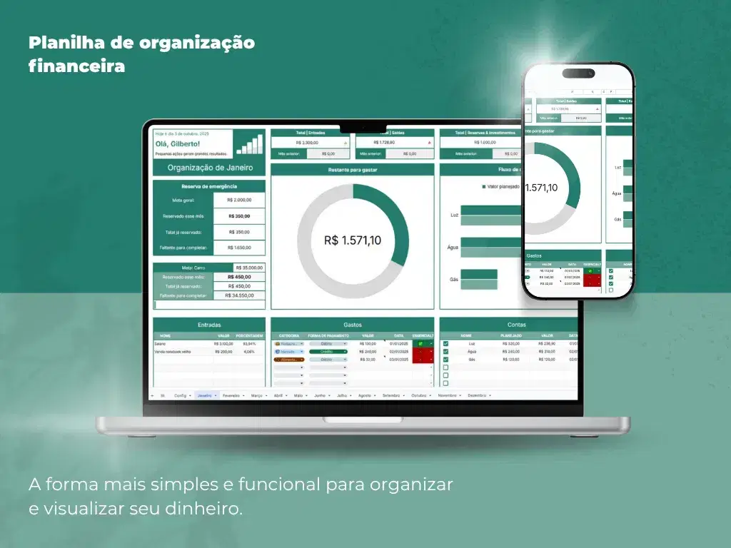 Eu nunca tinha conseguido manter um controle financeiro por mais de um mês. Com essa planilha ficou tudo muito claro e fácil de usar. Hoje sei exatamente para onde meu dinheiro vai.